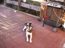 Tommy vor dem Grill und wartet mal wieder auf ein kleines Bratwürstchen